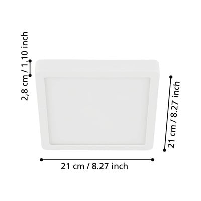 LED, z plastikowym kloszem, metalowa/plastikowa, biała, 21x21 cm, wysokość 3 cm