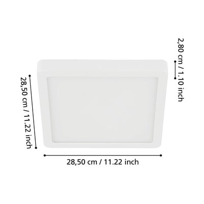 LED, z plastikowym kloszem, metalowa/plastikowa, biała, 28,5x28,5 cm, wysokość 3 cm