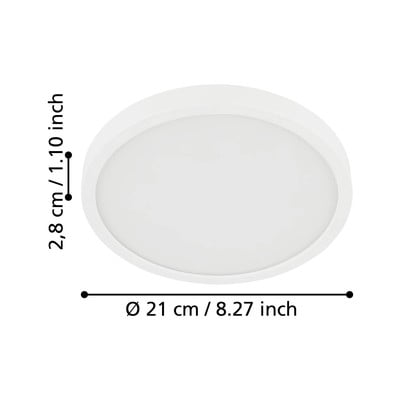LED, z plastikowym kloszem, metalowa/plastikowa, biała, ø 21 cm, wysokość 3 cm