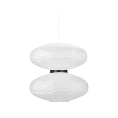 urzeka ciekawym, tekstylnym wzorem z metalowym paskiem pośrodku. Ma również regulowaną wysokość oraz miejsce na 2 żarówki.