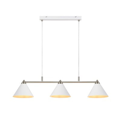 Lampa składa się z trzech kloszów umieszczonych na horyzontalnej konstrukcji. Doskonale zaprezentuje się nad stołem w jadalni.