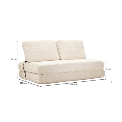 Z materiału bouclé, rozkładana, biała, dwuosobowa, szerokość 150 cm