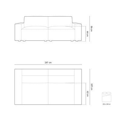 Z materiału bouclé, rozkładana/ze schowkiem, biała, trzyosobowa, szerokość 247 cm