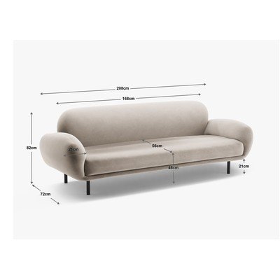 Z materiału boucléBiałaTrzyosobowaSzerokość 208 cmGłębokość 72 cmGłębokość siedziska 56 cm
