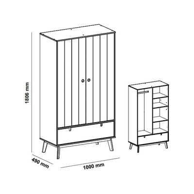 Z płyty MDF, powłoka: barwienie, biała/w naturalnym kolorze, szerokość 100 cm, wysokość 180 cm, głębokość 49 cm