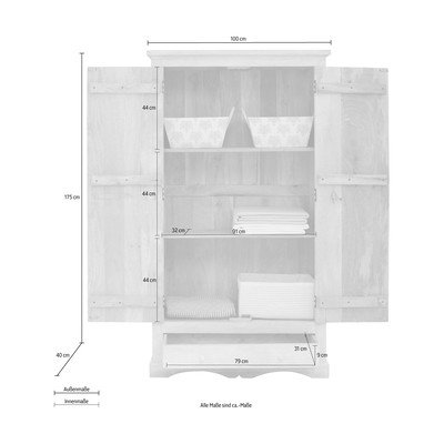Z litego drewna mango, powłoka: lakierowanie, biała, szerokość 100 cm, wysokość 175 cm, głębokość 40 cm