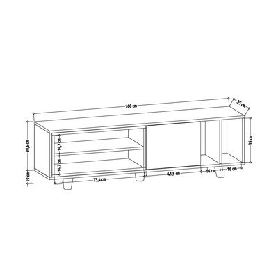 W dekorze dębu, z płyty MDF, powłoka: melamina, biała/w naturalnym kolorze, szerokość 160 cm, wysokość 49 cm, głębokość 35 cm