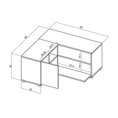 Szafka pod TV AngleNarożna, w dekorze dębu, z płyty wiórowej, powłoka: melamina, biała/w naturalnym kolorze, szerokość 90 cm, wysokość 45 cm, głębokość 90 cm