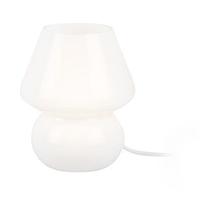 Lampa stołowa Glass VintageZe szklanym kloszem, szklana, do kontaktu, biała, wysokość 18 cm