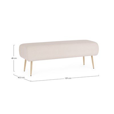 Tapicerowana, biała, szerokość 129 cm, głębokość 45,5 cm, wysokość 48 cm