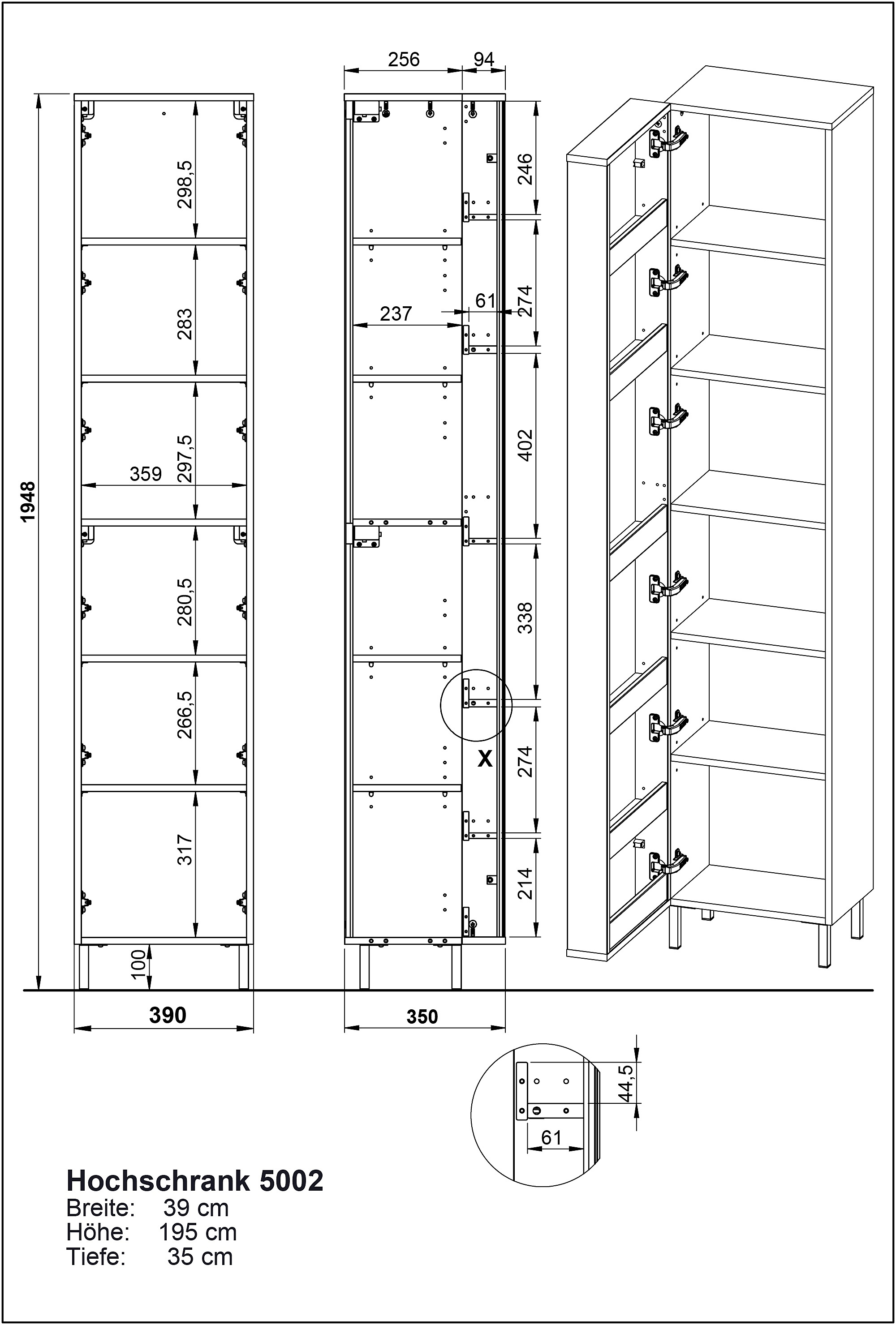 Wysoka/wąskaZ płyty wiórowejPowłoka: melaminaBiałaSzerokość 39 cmWysokość 195 cmGłębokość 35 cm