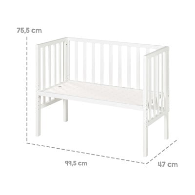 Łóżeczko zawiera wysokiej jakości materac o wymiarach 45 x 90 cm wykonany z przetestowanej pianki PU, oddychający ochraniacz do łóżeczka z siatki i opatentowaną barierkę ochronną.