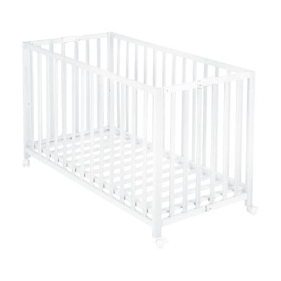 Łóżeczko Fold up60x120 cm, z regulowaną wysokością/na kółkach, ze stelażem, z płyty MDF/ze sklejki, powłoka: barwienie, białe