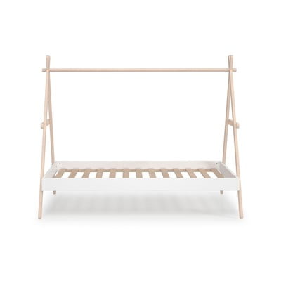 90x200 cm, w kształcie domku, ze stelażem, z litego drewna sosnowego, powłoka: lakierowanie, białe/w naturalnym kolorze