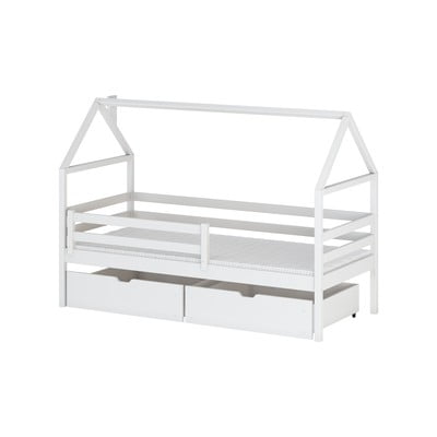 80x160 cm, w kształcie domku, ze schowkiem, ze stelażem, z litego drewna sosnowego, powłoka: lakierowanie, białe
