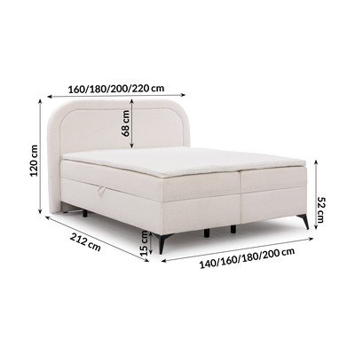 140x200 cm, ze schowkiem, tapicerowane, z materacem/z topperem, z materiału bouclé, białe