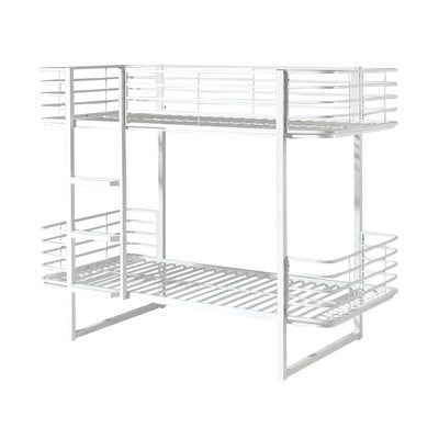 Łóżko jest wyposażone w wysoką barierkę ochronną wokół górnego łóżka i szerokie stopnie na drabince, co zwiększa bezpieczeństwo dzieci podczas użytkowania. Aby zapewnić maksymalną stabilność, łóżko należy przymocować do ściany.