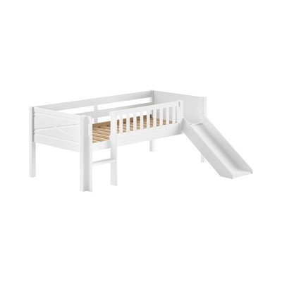 Łóżko dziecięce Scott90x200 cm, podwyższone, ze zjeżdżalnią, ze stelażem, z litego drewna sosnowego, powłoka: barwienie, białe