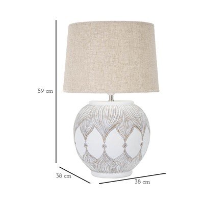 Z tekstylnym kloszem, z żywicy polimerowej, do kontaktu, biała/beżowa, wysokość 59 cm