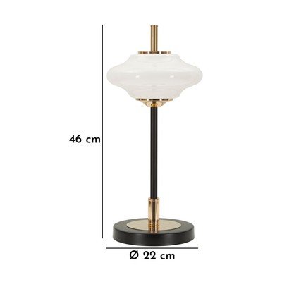 Ze szklanym kloszem, metalowa, biała/czarna, wysokość 46 cm