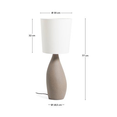 Lampa stołowa Viona marki Kave Home łączy w sobie podstawę o teksturze imitującej kamień z tekstylnym kloszem. Jej solidna, organicznie ukształtowana podstawa nadaje całości charakteru i wyjątkowości.