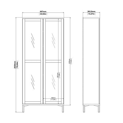 W dekorze dębuZ płyty wiórowejPowłoka: papierBiała/w naturalnym kolorzeSzerokość 89 cmWysokość 203 cmGłębokość 36 cm