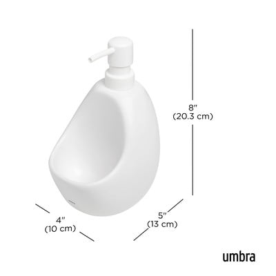 Posiada wbudowany schowek, w którym można przechowywać niezbędne akcesoria kuchenne, takie jak druciak (który znajduje się w zestawie). Wytrzymały i ciężki materiał ceramiczny sprawia, że dozownik jest stabilny i umożliwia łatwą obsługę pompki jedną ręką. Całkowita pojemność dozownika wynosi 590 ml.