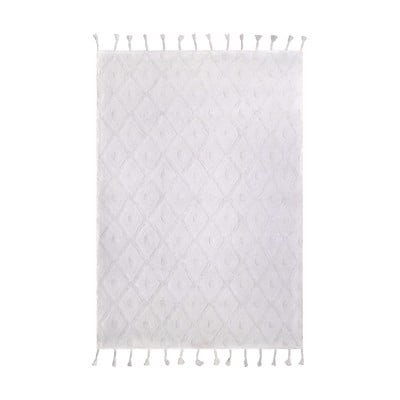 Dywan dziecięcy OrlandoTkany ręcznie, bawełniany, bouclé, bez włosia, z frędzlami, biały, 120x170 cm