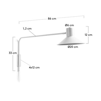 Kinkiet Aria marki Kave Home został wykonany z lakierowanej na czarno stali. Posiada ruchomy zawias, który ułatwia skierowanie światła tam, gdzie jest ono potrzebne. Lampa jest kompatybilna z żarówką E14 o maksymalnej mocy 25 W. Żarówka nie jest dołączona do zestawu.