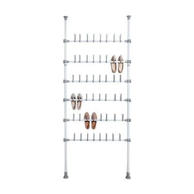 Ciekawe, ale stabilne rozwiązanie z rurki. Pomieści wiele par butów i może dlatego bardziej nadaje się do długotrwałego przechowywania niż jako standa...