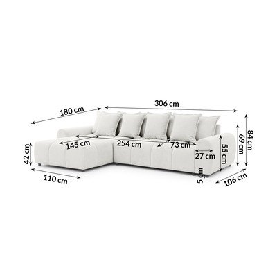 Lewostronny/z szezlongiem, biały, wodoodporny/plamoodporny, czteroosobowy, szerokość 306 cm