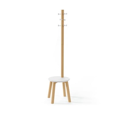 Wieszak Pillar to świetne rozwiązanie zarówno do przytulnych, jak i przestronnych wnętrz. Dzięki podstawie ze stołkiem zyskujesz również miejsce na torebkę lub siedzisko podczas zakładania butów.
