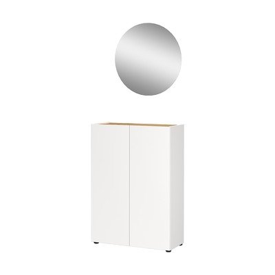 Zestaw do przedpokoju Alviano składa się z szafki na buty i okrągłego lustra. Szafka na buty wyposażona jest drzwiczki, za którymi znajdują się trzy półki. Półki mają regulowaną wysokość, a każda z nich ma nośność do 5 kg. Górna i dolna część półki na buty mają nośność do 15 kg. Zestaw Alviano zapewnia miejsce do przechowywania do 12 par butów.