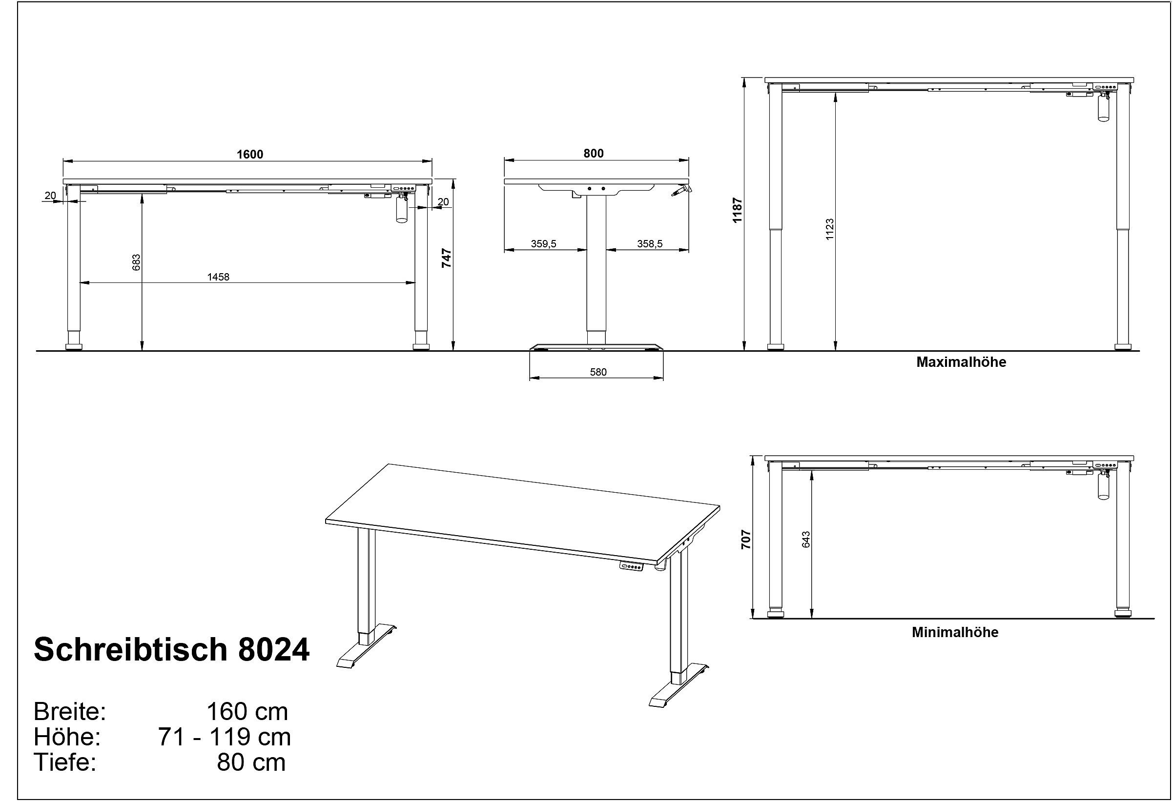 Biurko BorasZ elektryczną regulacją wysokości, 80x160 cm