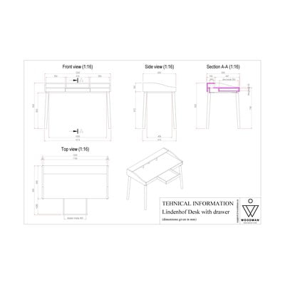 Z sekretarzykiem, z otworem na kable, 60x120 cm