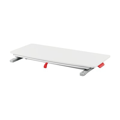 Wystarczy postawić blat na biurku, aby w mgnieniu oka zamienić je w mobilne miejsce pracy. Blat jest solidny i stabilny na każdej wysokości dzięki pneumatycznej regulacji. Powierzchnia jest wystarczająco duża, aby zmieścić monitor i laptop. Smukła konstrukcja ułatwia przenoszenie i przechowywanie.