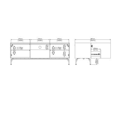 Szafka w dekorze dębu o szerokości 147 cm oferuje mnóstwo miejsca do przechowywania dzięki dwóm szafkom z regulowanymi półkami i jednej szufladzie. Otwarta środkowa część zapewnia łatwy dostęp do sprzętu, a system zarządzania kablami pozwala wszystko uporządkować. Dzięki metalowym nogom i nowoczesnemu wzornictwu pasuje do różnych wnętrz.