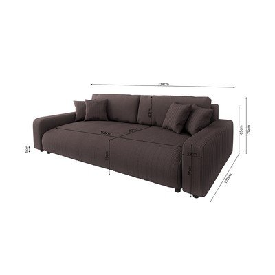 Sztruksowa, rozkładana/ze schowkiem, brązowa, trzyosobowa, szerokość 234 cm