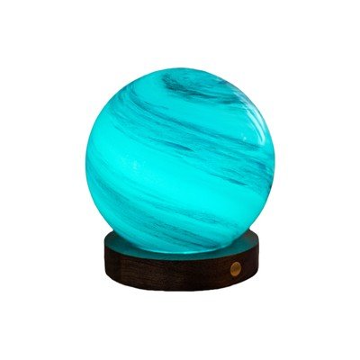 Lampa oferuje kilka opcji oświetlenia – od dynamicznej gry siedmiu zmieniających się świateł RGB po spokojne białe światło. Intensywność światła można łatwo regulować za pomocą miedzianego przycisku. Podstawa lampy wykonana jest z drewna orzecha amerykańskiego z certyfikatem FSC.