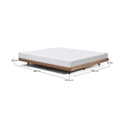 To solidne i stabilne łóżko bez zagłówka wyposażono w stelaż z 14 listwami z brzozowej sklejki, które gwarantują optymalne wsparcie i wentylację materaca. Konstrukcja jest przeznaczona dla materaca o wymiarach 160 x 200 cm. Maksymalną stabilność oraz estetyczną spójność designu zapewniają dziewięć nóg wykonanych z litego drewna brzozowego, charakteryzujących się eleganckim, okrągłym przekrojem i zewnętrznym profilem pokrytym drewnianą okleiną.