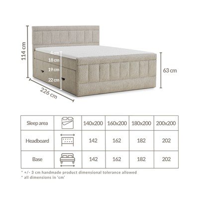 Beżowe łóżko kontynentalne ze schowkiem 200x200 cm Caya – Maison de Rêve