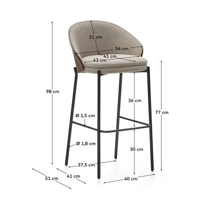 Elegancki hoker Eamy marki Kave Home wprowadzi styl i wygodę do każdego wnętrza. Krzesło o wysokości siedziska 77 cm jest idealne do nowoczesnych kuchni lub barów. Wyposażone jest w plastikowe podkładki chroniące podłogę przed zarysowaniami. Ergonomiczna konstrukcja i wysokiej jakości materiały zapewniają wygodne siedzenie i długą żywotność. Idealny wybór dla osób poszukujących połączenia funkcjonalności i estetyki.