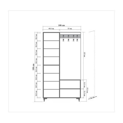 Zestaw do przedpokojuBrązowy, szerokość 36 cm, wysokość 196 cm