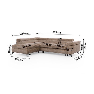 SztruksowyCzęściowo rozkładany/rozkładany/ze schowkiemLewostronny/w kształcie litery LBrązowyOdpowiedni dla zwierząt domowych/plamoodpornyCzteroosobowySzerokość 275 cm