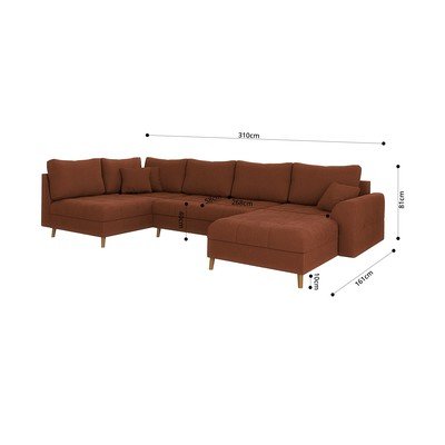 Sztruksowy, prawostronny/w kształcie litery U, ceglasty, powyżej 4 osób, szerokość 310 cm