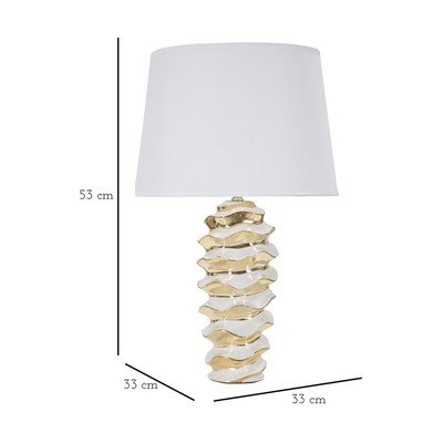 Z tekstylnym kloszem, ceramiczna, do kontaktu, biała/w kolorze złota, wysokość 53 cm