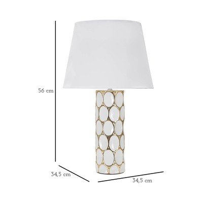 Z tekstylnym kloszem, ceramiczna, do kontaktu, biała/w kolorze złota, wysokość 56 cm
