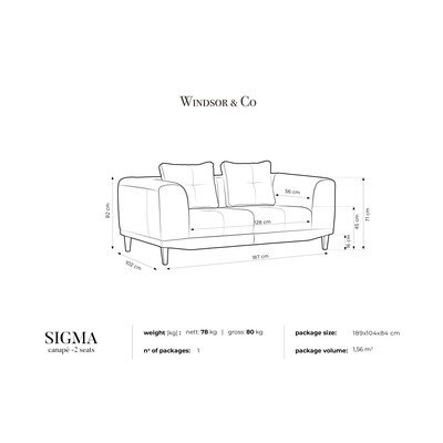 Doskonałą wygodę zapewnia tapicerka, którą tworzy poliuretanowa pianka o wysokiej gęstości 30—35 kg/m³. O marce: Francuska marka Windsor & Co. Sofas projektuje nowoczesne sofy i fotele, które są wygodne i cieszą oko. Dla jej projektantów nie są to zwyczajne meble, ale symbole przytulnego domu.