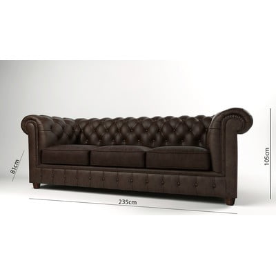 Aksamitna, typu chesterfield, ciemnobrązowa, trzyosobowa, szerokość 230 cm