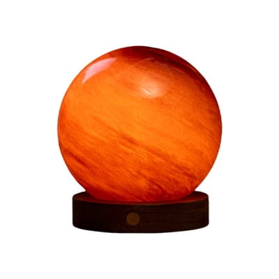 Lampa oferuje kilka opcji oświetlenia – od dynamicznej gry siedmiu zmieniających się świateł RGB po spokojne białe światło. Intensywność światła można łatwo regulować za pomocą miedzianego przycisku. Podstawa lampy wykonana jest z drewna orzecha amerykańskiego z certyfikatem FSC.
